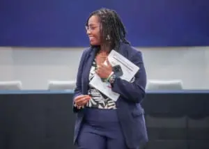 NEA Foundation Program Officer for Community Schools Jazz Cleark speaks to the SRACS group in Little Rock