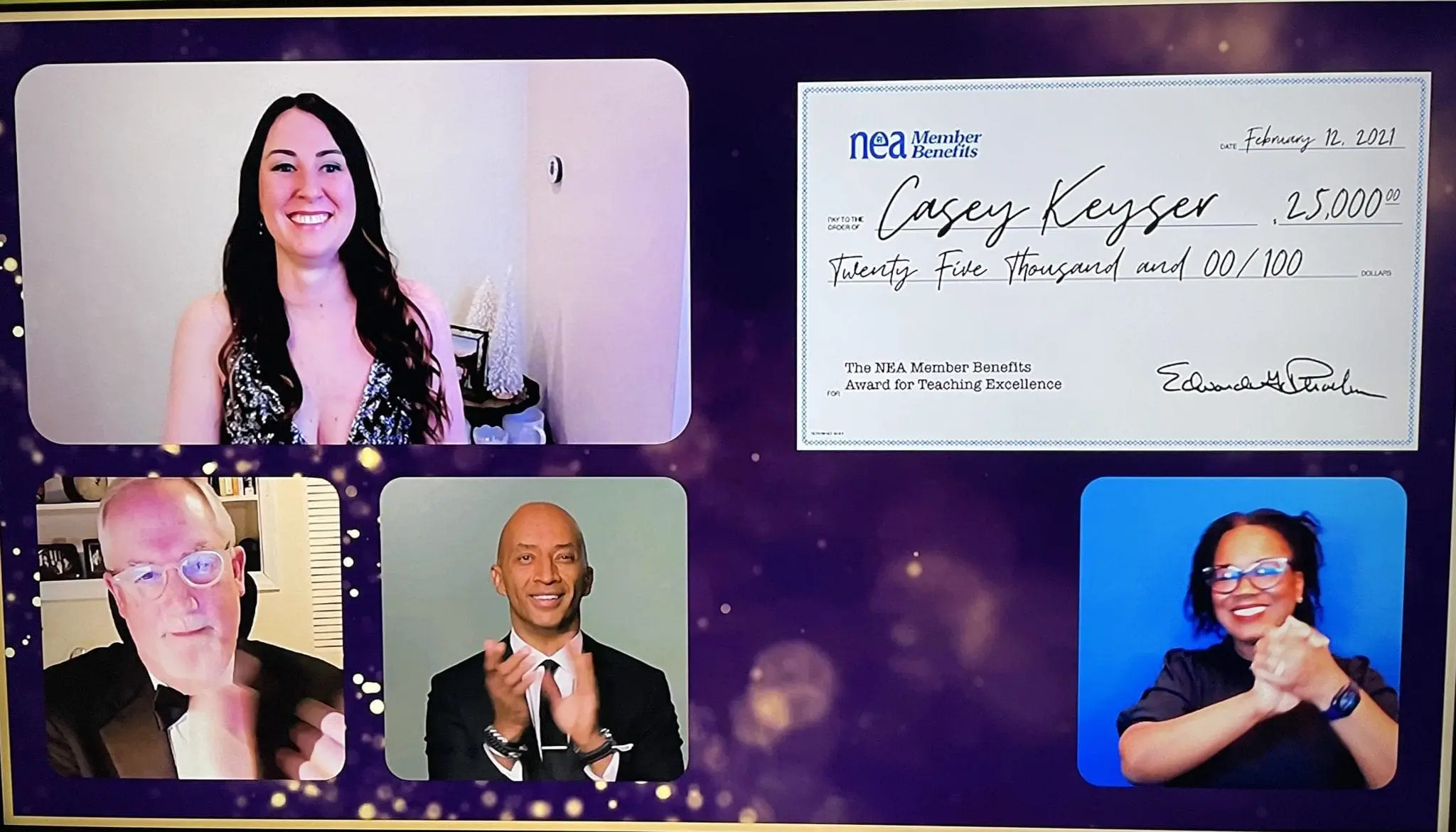 Educators’ big night was one to remember! More than 1,100 educators and public education advocates tuned in virtually to celebrate the achievements of outstanding educators from across the country at the NEA Foundation Salute to Excellence in Education Gala on Feb. 12. Casey Keyser (pictured below), a third-grade elementary school teacher at Butterfly Ridge Elementary School in Frederick, Md., received the top honor, the NEA Member Benefits Award for Teaching Excellence. Learn more about Horace Mann Award for Teaching Excellence educators Amy Gallaway, Leila Kubesch, Sara Medalen, and Takeru Nagayoshi here, who also were honored at the Gala.